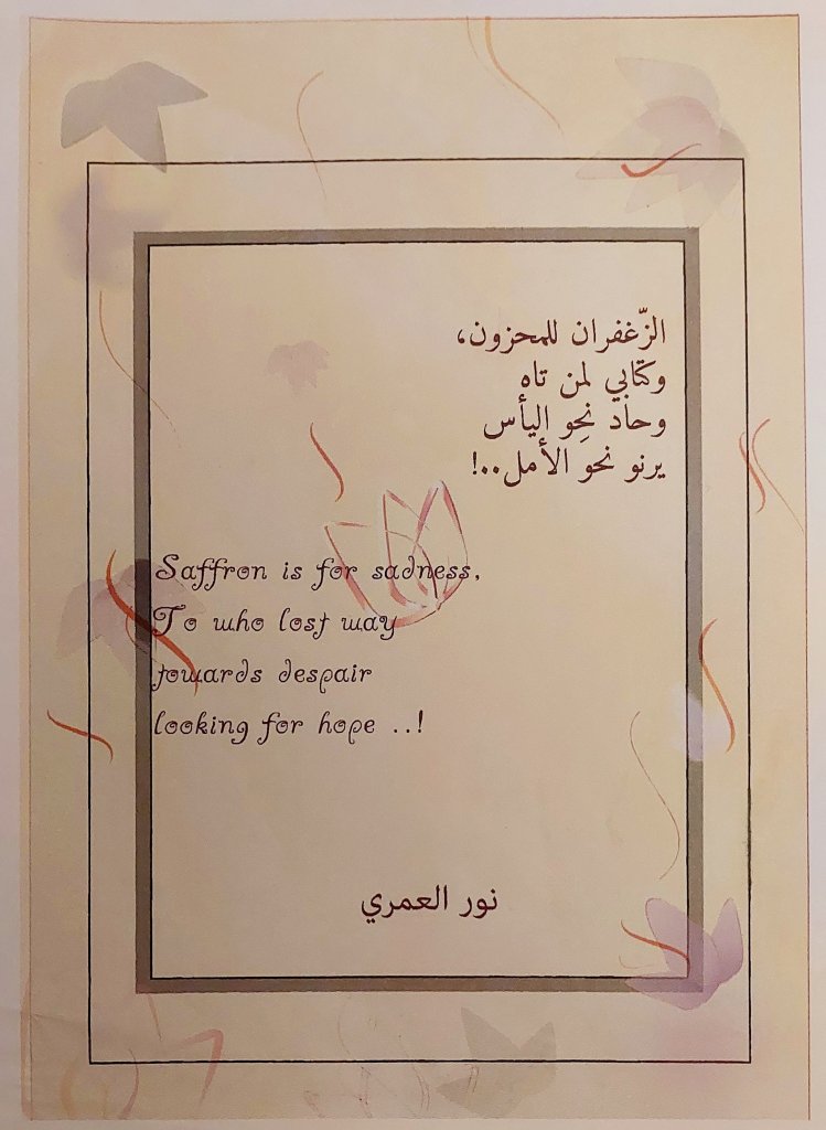 Innerhalb des Buches wurde die Verwendung von Trennlinien in Form eines Safranblรผtenblatts gestaltet, was der Stimmung des Buches entsprach.